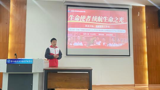 3月4日,电子竞技博彩 在图书馆二楼报告厅举办“职业规划大赛优秀选手展演”活动。江西省第三届大学生职业规划大赛决赛就业赛道本科组金奖获得者何明辉、银奖获得者余文鑫进行现场展示,学院40余名学生到场观看。
