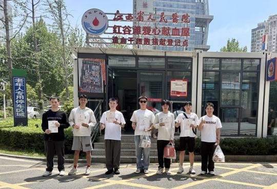 4月18日,电子竞技博彩 6名学生在造血干细胞捐献者余文鑫的带领下自愿前往江西省人民医院参与无偿献血并加入中华骨髓库,以实际行动诠释了VR青年的社会担当。