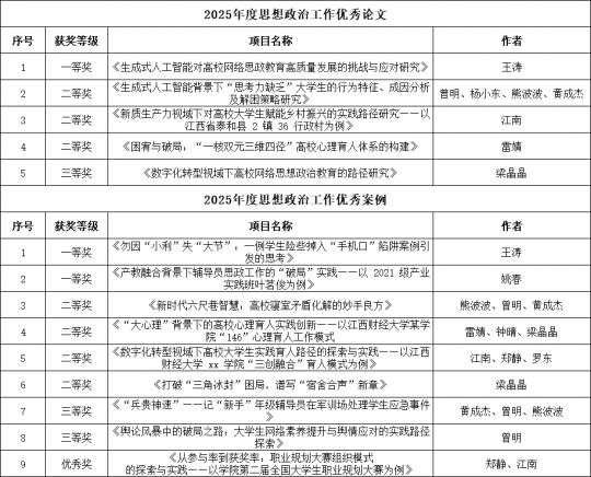 电子竞技博彩 辅导员队伍紧扣时代脉搏,围绕学生成长规律、网络思政教育、心理健康育人等方向展开深入研究,提交的工作论文与案例兼具理论深度与实践价值。其中,王涛撰写的《生成式人工智能对高校网络思政教育高质量发展的挑战与应对研究》凭借其创新性研究方法与可推广的实践路径,经专家评审推荐至省级思政工作优秀成果评选。