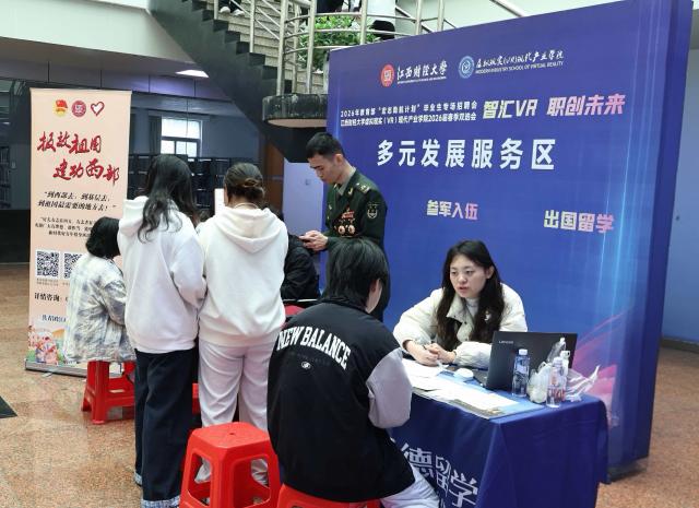 双选会现场特设多元服务区,涵盖西部计划、参军入伍、出国留学等服务板块,特意邀请校团委开展西部计划专题宣讲、组织学院退役士兵开展参军入伍政策宣传,为毕业生解读相关政策、解答各类疑问。服务区安排专人提供政策咨询引导,为毕业生提供“一站式”精准服务。各毕业班班主任也积极融入现场,精准掌握学生到场情况,发掘招聘信息,为求职学生提供针对性的就业指导服务。